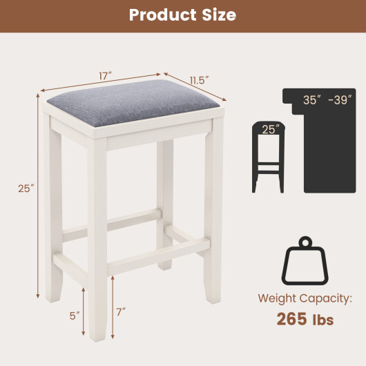 Specifications: Color Griege/Brown Material Rubber Wood Linen Sponge Overall Dimension 17″ x 11.5″ x 25″ Net Weight 23 lbs Weight Capacity of Each Stool 265 lbs
