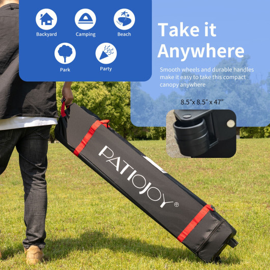 - -Commercial grade canopy tent provides 6.6′ x 6.6′ large shade