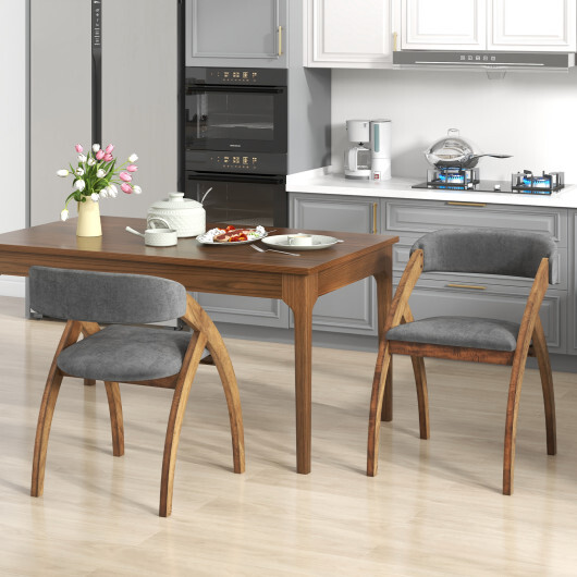 Specifications: Color Walnut + Gray Material Rubber Wood Sponge Polyester Fabric Product Dimension 25″ x 20″ x 29.5″ Seat Size 17.5″ x 17″ Seat Height 19″ Weight Capacity of Each Chair 265 lbs Net Weight of 2 Chairs 24 lbs