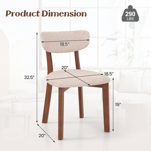 Specifications: Cushion Color: Beige/ Gray Frame Color: Walnut Material: Rubber wood Line Fabric Sponge Product Dimensions of Each Chair: 20″ x 18.5″ x 32.5″(L x W x H) Seat Dimensions: 20″ x 16.5″ (D x W) Seat Height: 19″ Weight Capacity: 290 lbs Net Weight of 2 Chairs: 22 lbs Net Weight of 4 Chairs: 44 lbs