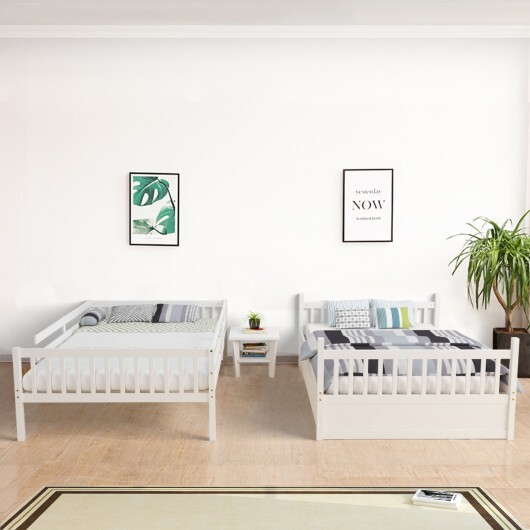Specifications: Color: White/Brown Material: Pine wood + MDF + plywood Overall dimension: 79.5″ x 57″ x 60″ (L x W x H) Trundle dimension: 75.5″ x 40.5″ x 10.5″ (L x W x H) Weight capacity of upper bed: 360 lbs Weight capacity of lower bed: 360 lbs Weight capacity of trundle: 270lbs Suitable mattress size: Full (mattress not included) Height of guard rail: 14″ Net weight: 80 lbs Package includes: 1 x Bunk bed with trundle 1 x Instruction