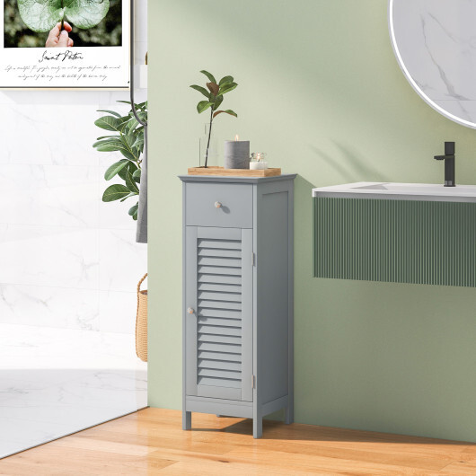 Specifications: Color: White/Gray Material: MDF Overall dimension:13″ x 12″ x 34.5″ (L x W x H) Drawer dimension: 10″ x 6″ (L x H) Door dimension: 10″ x 22.5″ (L x H) Net weight: 20 lbs Top board maximum weight: 20 lbs Shelf maximum weight: 7 lbs Drawer maximum Weight: 5 lbs Package includes? 1 x Bathroom floor cabinet 1 x Instruction
